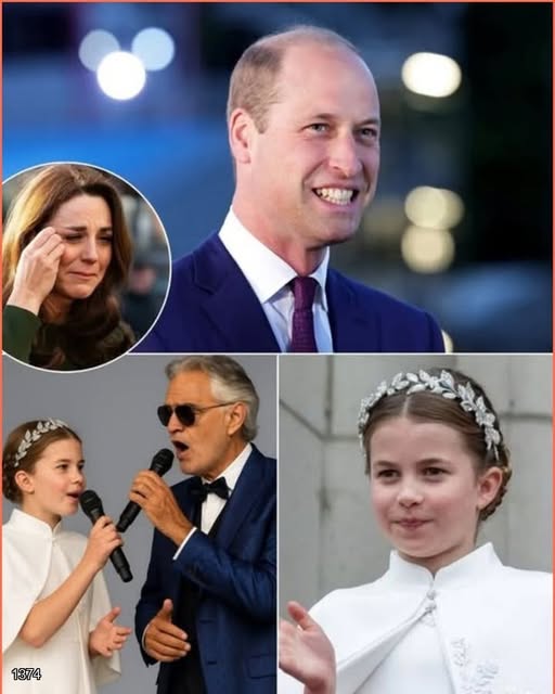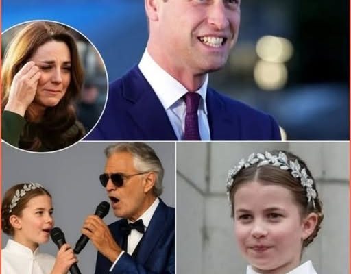 In one of the most tender royal moments in recent memory, 10-year-old Princess Charlotte stunned Buckingham with an emotional tribute to her father, King William, on his 43rd birthday. But this was no ordinary birthday toast. Stepping out under the chandeliers of the palace’s grand ballroom, wearing a floor-length sapphire gown and a delicate diamond tiara, Charlotte made her public vocal debut beside the world–renowned tenor Andrea Bocelli—leaving not a single dry eye in the room.