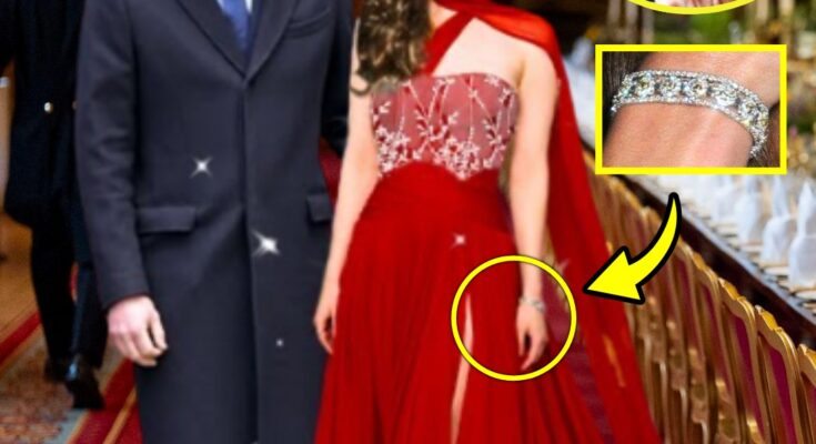 The bracelet, a rare piece from the royal collection, is said to hold sentimental value, having been presented to Catherine by King Charles during a private ceremony last year. Its intricate design, featuring rare pink diamonds, complemented the soft tones of her gown, creating a look that was both regal and modern.