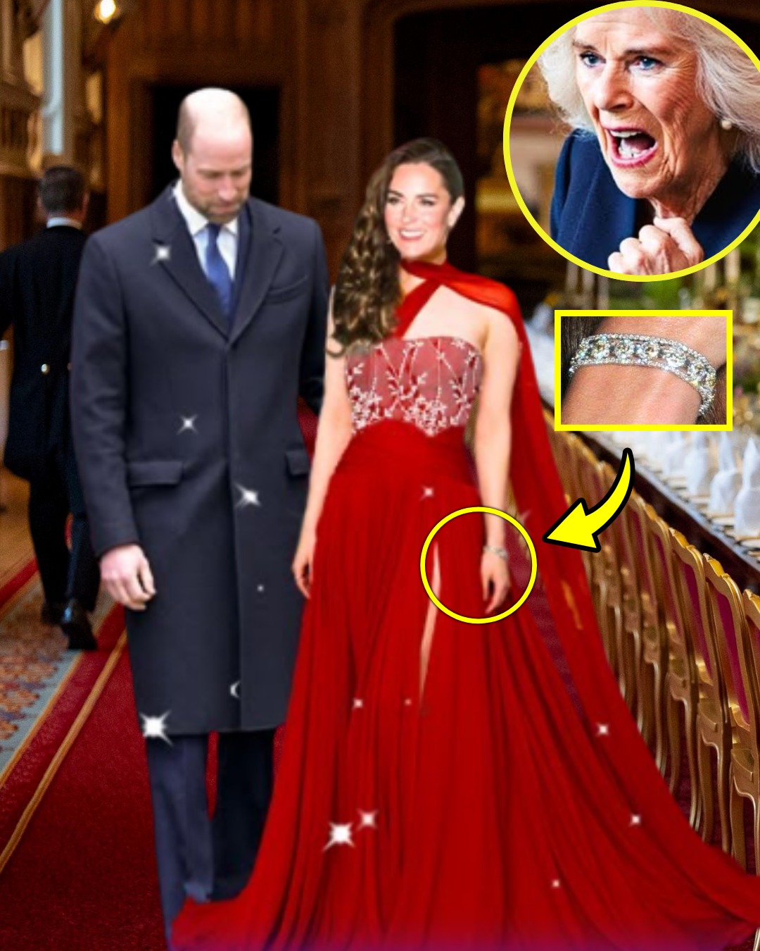 Adding to the allure was a limited-edition diamond bracelet, a personal gift from King Charles, which sparkled under the chandeliers. Sources close to the royal household claim Camilla was “furious” as Catherine’s radiant appearance dominated the evening, with attendees unable to take their eyes off her. “Camilla felt overshadowed,” an insider revealed. “She had chosen a bold look, but Catherine’s effortless grace and that bracelet stole the show.”