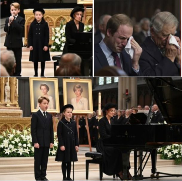It was never meant to be a grand performance — no flashing cameras, no stage lights, no audience beyond the royal family gathered quietly in the music room of Windsor Castle. Yet when the first notes of “I Dream About You” filled the air, something extraordinary happened. Three generations of love, loss, and remembrance came together in a single song — sung by Princess Charlotte and Prince George, guided tenderly by their mother, Princess Kate.