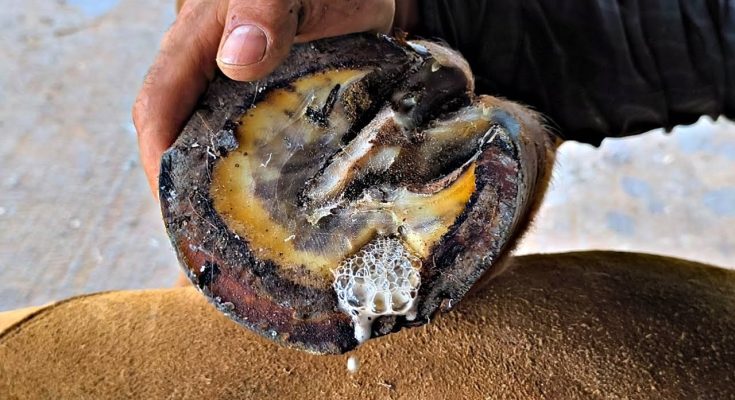 The horse needed help; it stepped on something sharp that caused a large hole in its hoof. We performed cleaning and hoof trimming procedures to apply a horseshoe and protect the injured area!