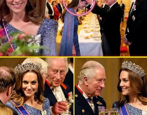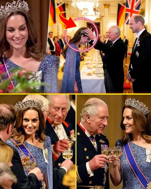 The evening unfolded like a meticulously scripted sonnet of statecraft, with King Charles III and Queen Camilla presiding over a white-tie affair that blended Anglo-German bonhomie with the monarchy’s timeless theater. Catherine, 43, arrived on the arm of Prince William, her pale blue Jenny Packham gown—a cascade of shimmering sequins evoking a winter aurora—paired with sapphire drop earrings once owned by Queen Elizabeth II, the Prince of Wales Feathers Brooch, and the sash of the Royal Victorian Order. But it was the tiara, unseen in public for two decades, that commanded the room’s silent reverence. Atop her softly waved auburn tresses, the Oriental Circlet gleamed with 2,600 diamonds framing eleven Mughal-inspired arches and lotus motifs, accented by Burmese rubies that caught the candlelight like embers of empire. Royal watchers gasped; social media ignited. “A tiara fit for the queen,” one admirer posted on X, capturing the collective awe. This was Catherine’s fifth tiara moment since her 2011 wedding, her largest yet—and her most laden with legacy.