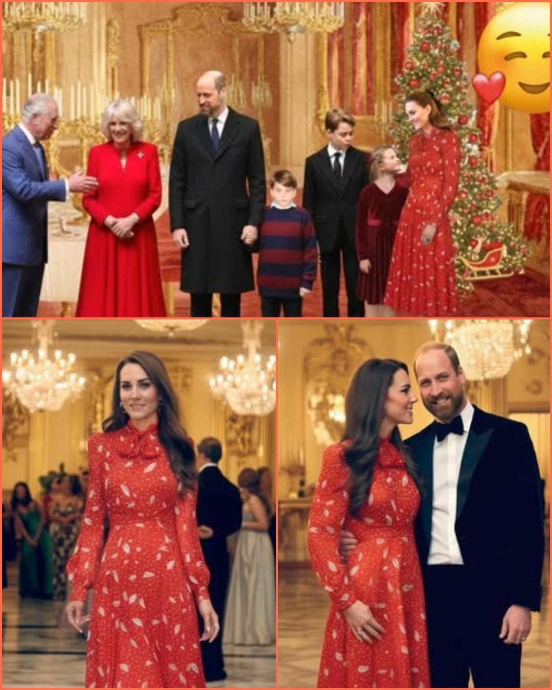 RF. PRINCESS CATHERINE TURNS HEADS! Her Red Satin Dress Sparks Frenzy at Palace Christmas Lunch