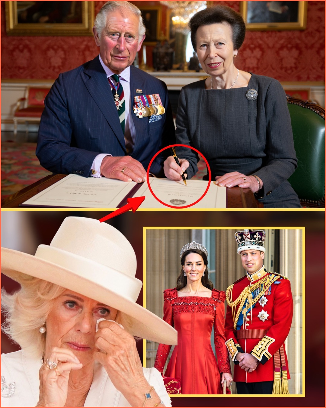 At 9:43 a.m., a sealed royal decree, bearing the signatures of King Charles and Princess Anne, emerged from Buckingham Palace. What seemed like a routine document quickly revealed a seismic shift in the monarchy’s structure. Notably absent from the decree was Queen Camilla’s name—a deliberate omission, confirmed by palace insiders, that has sparked intense speculation and debate.